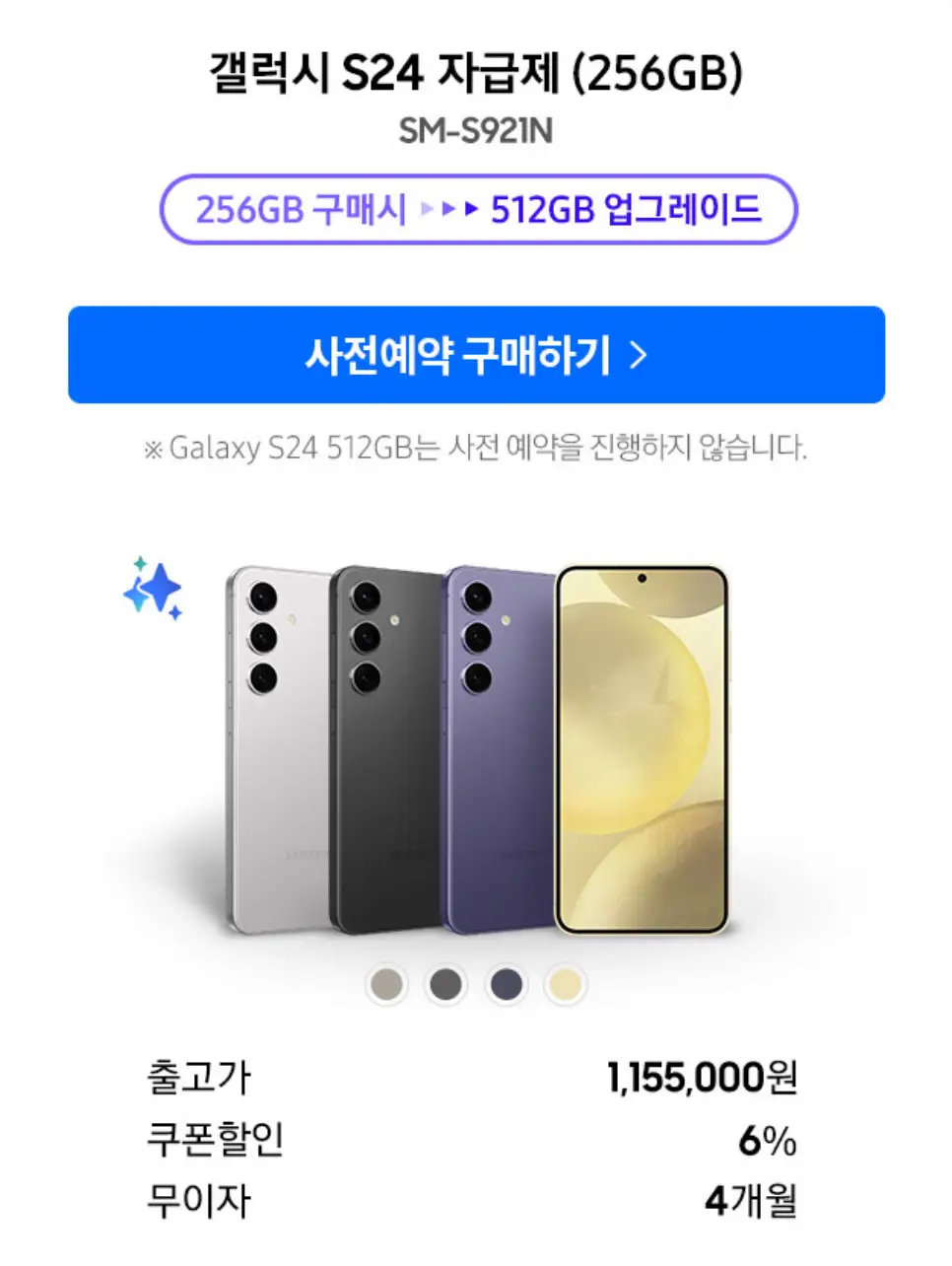갤S24시리즈 사전예약은 512GB는 사전 예약을 받지 않고 있습니다.