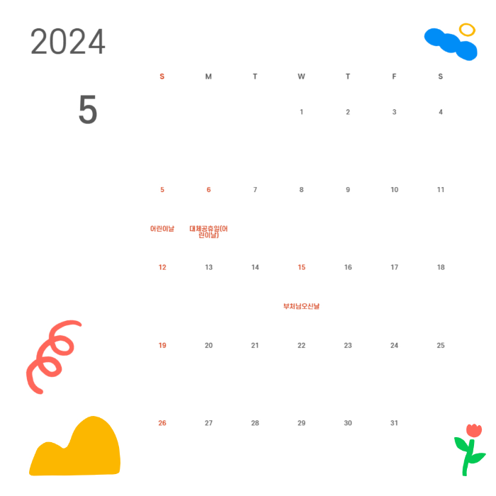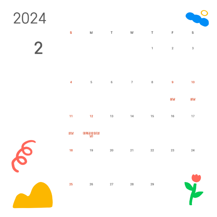 2024년 달력 다운로드 받으며 공휴일과 대체 휴무일 확인해보자