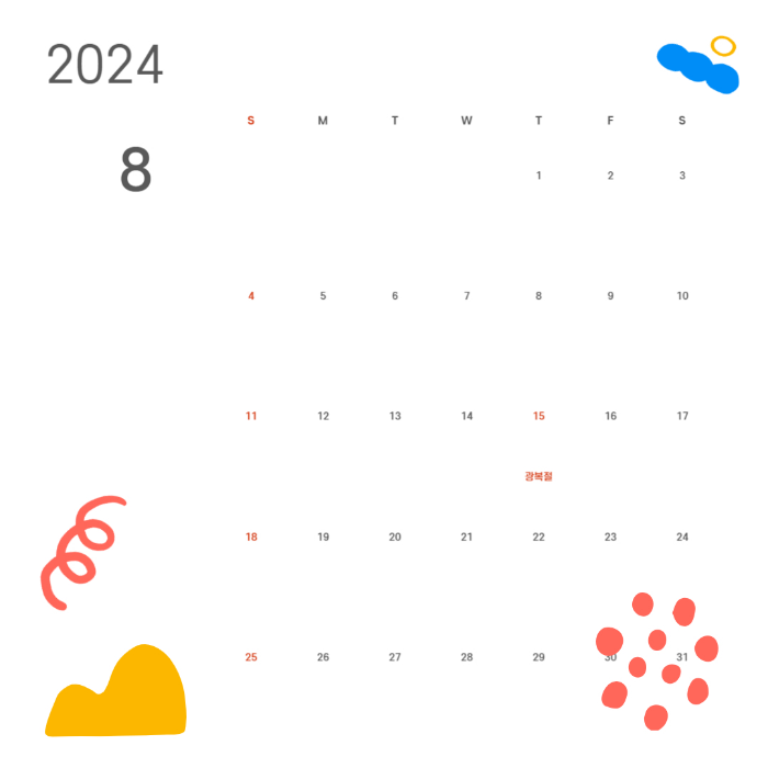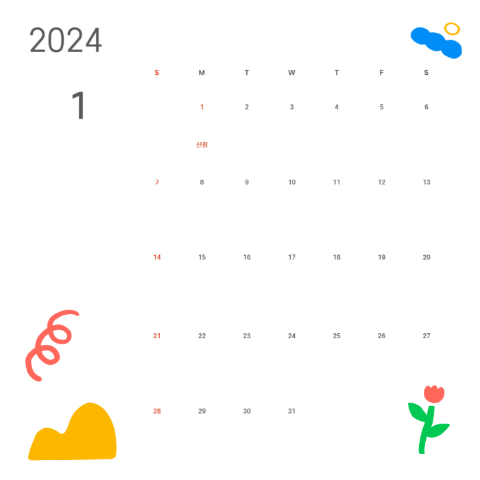 2024년 달력이 필요하신 분들은 아래를 참조하시길 바랍니다.